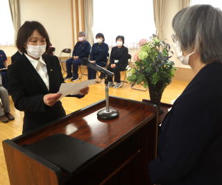 式では、新採用職員を代表して、清野桂子看護師が「福祉に携わる責任と誇りを持ち、愛と思いやりの心で誠実に仕事に取り組んでまいります。」と誓いました。